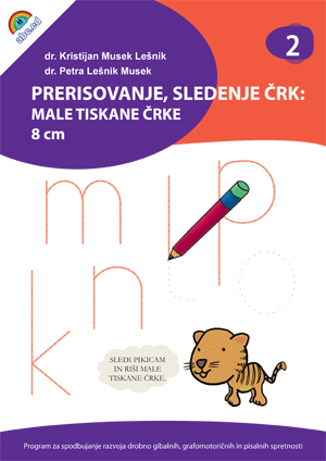 Naloge v tem delovnem zvezku so načrtovane tako, da otrok s sledenjem ali prerisovanjem 10 cm velikih malih tiskanih črk uri motorične dejavnosti, povezane s pisanjem, obenem pa se zaporedje gibov pri pisanju različnih črk utrjuje v motorični spomin. Naloge v delovnem zvezku zahtevajo bodisi sledenje narisanim črkam, bodisi prerisovanje črk.