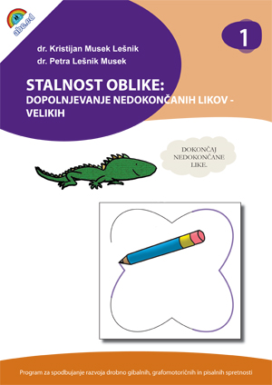 O dopolnjevanju Dopolnjevanje nedokončanih likov je pomembna dajevnost pri spodbujanju koordinacije Med risanjem naj otrok ne spreminja položaja lista in naj ga ne obrača. Če je le mogoče, naj poskusi vsak manjkajoči del risbe narisati v eni potezi, brez ustavljanja, ali prestavljanja pisala. Delovni listi in dejavnosti v tem delovnem zvezku Naloge v delovnem zvezku so načrtovane tako, da spodbujajo otrokovo vizualno motorično integracijo preko dopolnjevanja velikih narisanih likov. Težavnost nalog v delovnem zvezku se stopnjuje v več smereh: