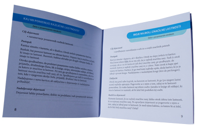 Komplet zajema 192 različnih osebnih lastnosti oziroma pridevnikov s pozitivno konotacijo, ki opisujejo ljudi in njihovo vedenje. Besede so izbrane v skladu z razumevanjem najstnikov. Cilj dejavnosti in iger je usmerjanje pozornosti najstnikov na pozitivne lastnosti in poteze pri sebi in pri drugih. Dejavnosti v kompletu najstnike preko iskanja primerov iz osebnih izkušenj spodbujajo k povezovanju osebnih lastnosti in vedenja. Na ta način utrjujejo razumevanje, da naše lastnosti pomembno vplivajo na naše odločitve in na naša ravnanja.